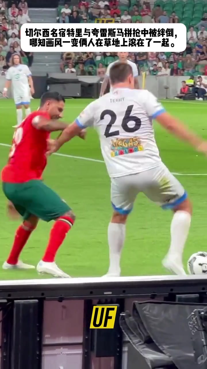夸雷斯马与特里在拼抢中摔倒而后两人竟然抱在一起贴贴