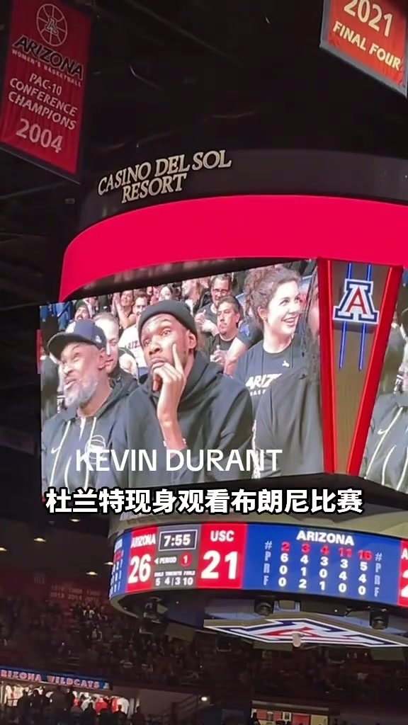 杜兰特观看布朗尼比赛这该死的气质帅我一脸