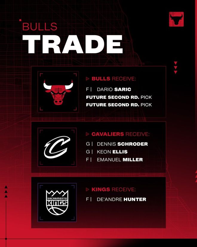 公牛得到:達裡奧-薩裡奇、2027年次輪簽、2029年次輪簽