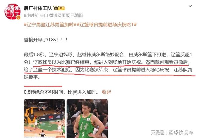 盡管在隨後的加時賽,遼寧隊再也沒有給江蘇隊任何機會,他們轟出一波15-2的攻擊波,最終以95-82大勝江蘇隊。不過,他們這一次提前開香檳的慶祝動作,卻險些毀瞭全場的努力。要知道,在技術犯規後,江蘇隊還剩下0.8秒,如果他們上演絕殺的話,那麼,遼寧隊替補席這一提前慶祝動作,將會成為CBA歷史上最大的笑話。不過,好在他們在加時賽足夠爭氣,避免成為人們茶餘飯後的笑話。