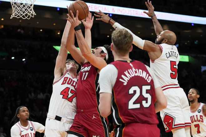 熱火上一場客場116-113險勝公牛,公牛過去3場連輸湖人、步行者與熱火遭遇3連敗,本賽季前兩次交鋒熱火均客場戰勝公牛。本場熱火缺少鮑威爾、希羅、米切爾與羅齊爾,公牛缺少吉迪、懷特、武切維奇等。首節前4分半鐘熱火3-12落後,熱火連追5分,公牛連得4分。熱火持續反撲追到17-20落後,卡特三分命中,維金斯三分回敬,公牛內外開花擴大9分優勢。熱火再追3分,首節結束熱火25-31落後公牛。首節公牛24中12,其中三分11中4,熱火26中9,其中三分12中3。