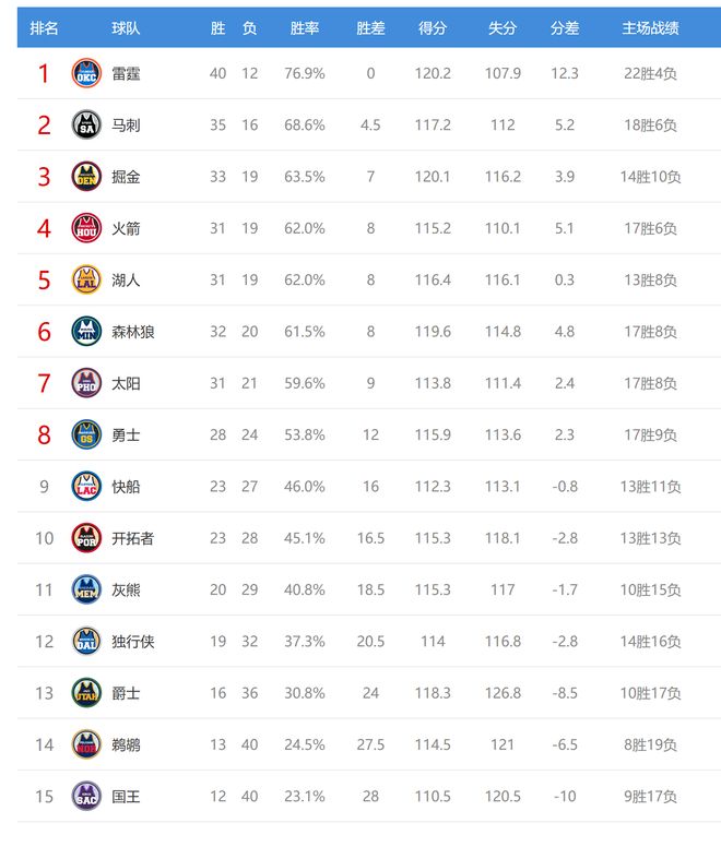 今日比賽後湖人、森林狼排名互換,其他西部球隊排名不變。