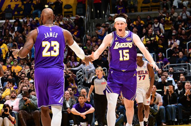 湖人主場迎戰76人,76人方面喬治禁賽,湖人方面海斯禁賽,新援肯納德無法出戰,東契奇打瞭16分鐘傷退,76人前三節占據上風,一度領先14分,三節戰罷領先2分,第四節裡夫斯開局連得8分,帶領湖人反超6分,隨後湖人一度把分差擴大到16分,76人沒有崩盤,他們一度把分差追到2分,但無力回天,最終湖人119-115擊敗76人。裡夫斯17中12(三分8中5)砍下35分6板2助,詹姆斯17中7得到17分4板10助,76人方面恩比德19中13得到35分7板7助2帽,馬克西22中11得到26分13助4斷。