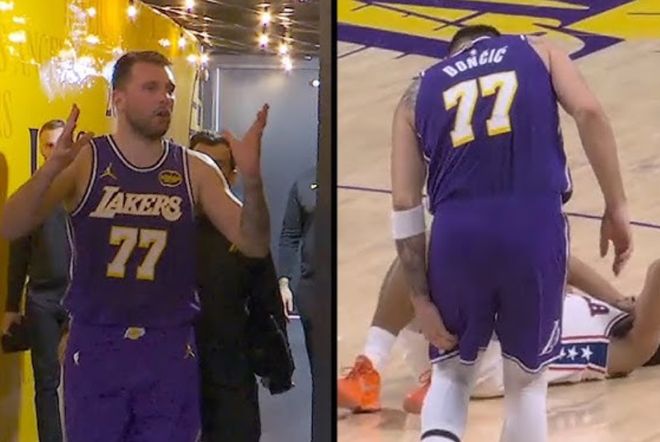 東契奇是在2月6日主場對76人的比賽第二節受傷。距離上半場結束還剩下3分多鐘的時候,湖人請求暫停,東契奇似乎是腿筋不適,隨後返回更衣室接受治療。湖人隊記Buha當時報道,東契奇在傷退之前,好幾個回合捂著左腿筋部位。