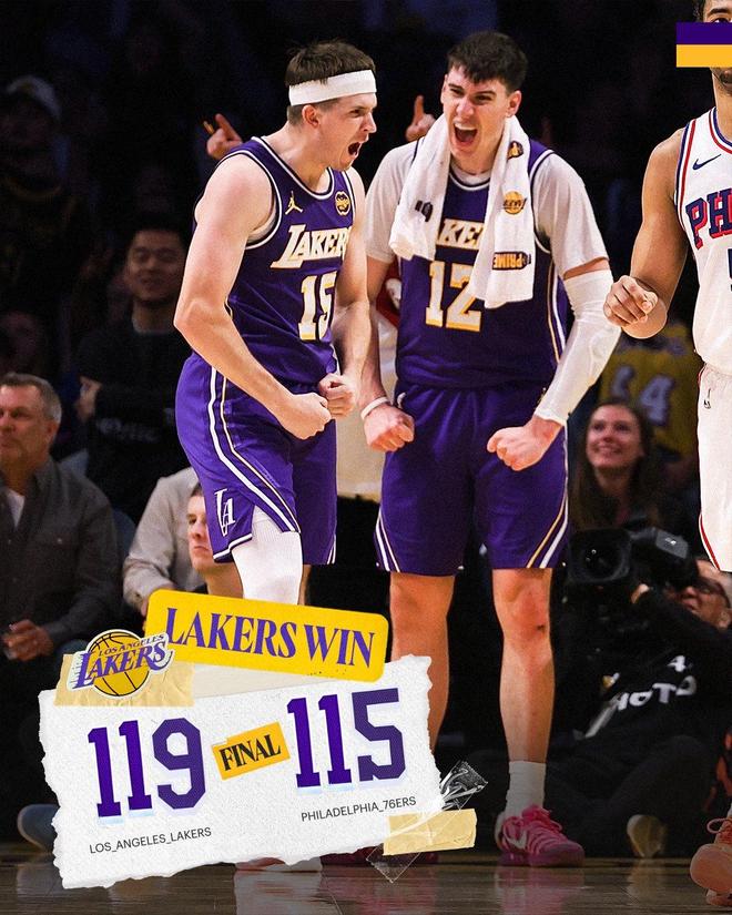 眾所周知,湖人擁有詹姆斯,東契奇和裡夫斯三位傳球大師,能給隊友們創造出極佳的空位投籃機會,但湖人偏偏就是缺射手,賽季至今場均34.9%的三分命中率排在聯盟第19位,場均隻能投進11.8個三分球,聯盟第23,打76人的這場比賽,湖人全隊三分25中9、命中率僅36%,其中裡夫斯8中5,八村壘2中2,其餘人三分合計15中2、命中率僅13.3%,真的辣眼睛。