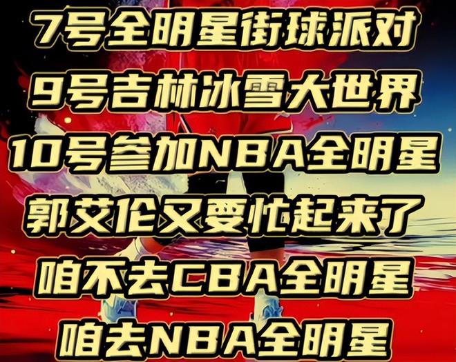 也許有人看到郭艾倫並沒有入選今年的CBA全明星陣容,連替補名額都沒有撈著會替他惋惜吧?殊不知,郭艾倫這個窗口期的行程排得那是相當的滿,跟廣東宏遠隊的胡明軒一起參加活動隻是開胃菜,。7號他將出現在全明星街球派對現場,9號回東北老傢去吉林參加活動。10號真正的重頭戲來瞭,他將再次以嘉賓身份參加NBA全明星活動,雖然丟瞭芝麻,但是卻撿瞭一個大西瓜,豈不是賺大發瞭嗎?