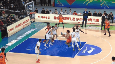 末節,上海男籃幾名小將開始發威,馬典成開場三分命中,隨後他還接偰李永煒妙傳,完成空中接力暴扣。再加上偰李永煒的三分,上海男籃始終掌控著優勢。