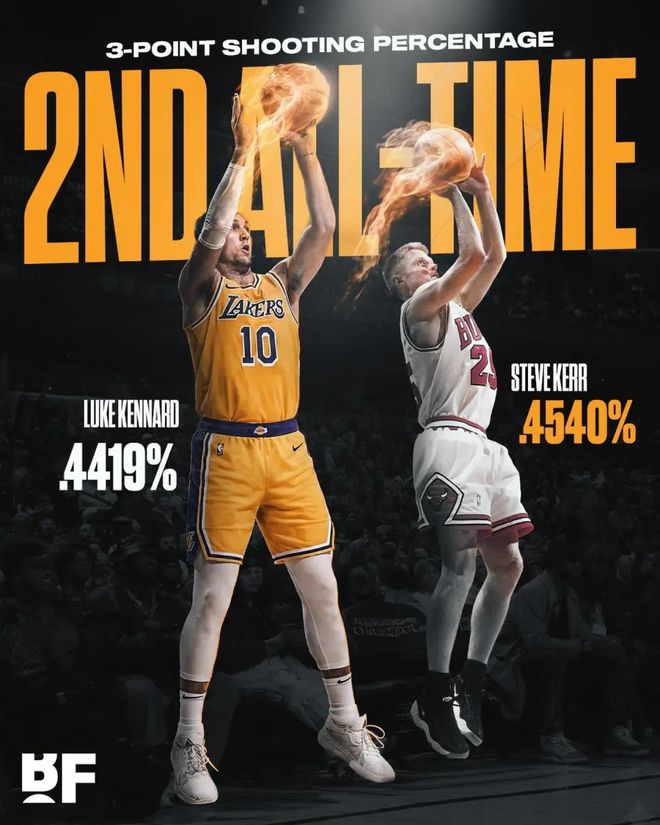 肯納德的到來將為湖人補上迫切需要的外線火力。他的職業生涯三分命中率高達44.2%(聯盟歷史第二,僅次於科爾的45.4%),本賽季至今更是以49.7%的三分命中率高居聯盟榜首。