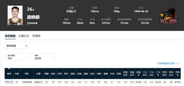 作為2025年CBA選秀探花,龐崢麟本被視作“潛力股”,如今卻成為球隊真正的引擎。在球隊戰績起伏之際,他用一場場精準的傳球、冷靜的終結,扛起瞭江蘇男籃的希望。