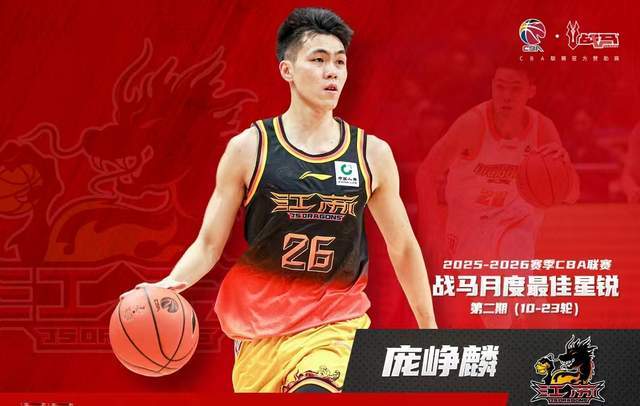 近日,CBA官方公佈2025-26賽季第二期月度最佳星銳球員,江蘇男籃新秀後衛龐崢麟成功蟬聯這一殊榮,成為本賽季唯一一位連續兩期當選的星銳球員。更令人震撼的是,他已入選CBA全明星首發陣容,並正式進入中國男籃集訓隊——一個新秀,三重身份,一步登天,創造歷史!