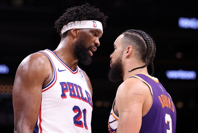 太陽主場迎戰76人,太陽少瞭阿倫,76人少瞭喬治,76人一度領先19分,太陽縮小瞭分差但無力回天,最終76人109-103擊敗太陽。馬克西21中8(三分10中3)得到29分9板6助1斷,恩比德19中9(三分7中4)得到33分9板3助,太陽方面狄龍23中11得到28分2板2助,佈克12中5得到21分2板9助。
