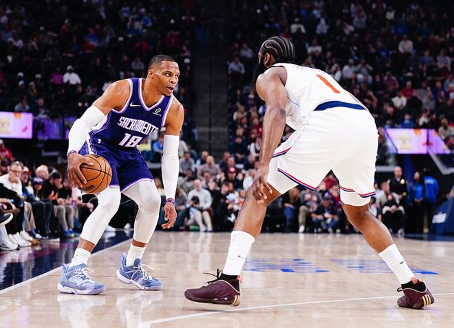國王主場迎戰騎士,哈登迎來騎士生涯首秀,國王少瞭小薩、拉文、穆雷、亨特、蒙克,騎士少瞭莫佈利、斯特魯斯、韋德,國王長時間占據上風,一度領先11分,第四節時一度領先7分,隨後哈登、米切爾聯手反超瞭比分,最終騎士132-126擊敗國王。米切爾24中13得到35分2板4助2斷2帽、哈登13中7(三分8中5)得到23分2板8助、阿倫12中11得到29分10板1助。國王方面威少14中8(三分10中5)得到21分5板9助、克利福德19中12(三分9中5)得到30分4板4助2斷2帽。