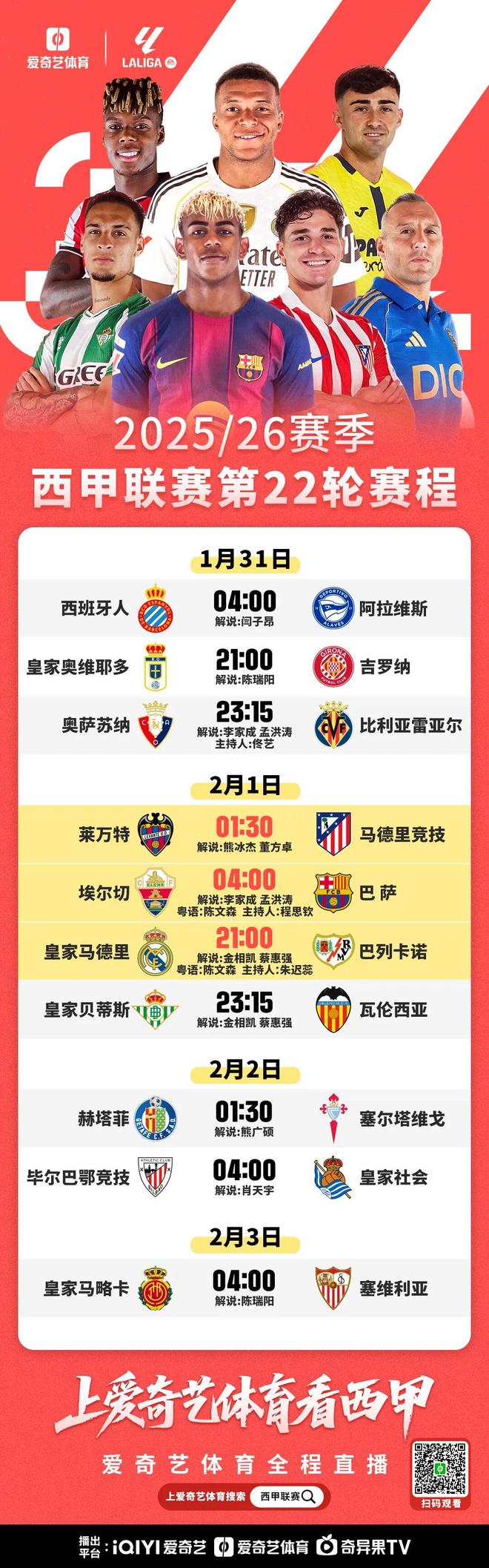一场场精彩对决即将上演,2月1日让我们共同期待西甲豪强与黑马的精彩表现。