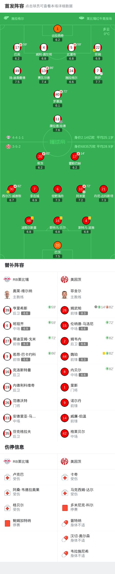 北京时间1月31日德国足球顶级联赛 联赛 第20轮,RB莱比锡主场对阵美因茨。RB莱比锡康拉德-哈德破门。美因茨阿米里破门,姆武帕破门。最终比分RB莱比锡 1-2 美因茨。