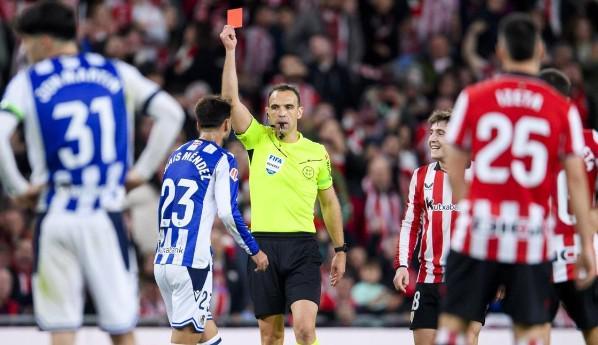 皇家社会中场布赖斯-门德斯在比赛的第83分钟被主裁判夸德拉-费尔南德斯罚下,不过夸德拉的这一判罚引起了很大争议,巴尔达诺、赫拉德等名宿都认为这不应该是一个红牌。