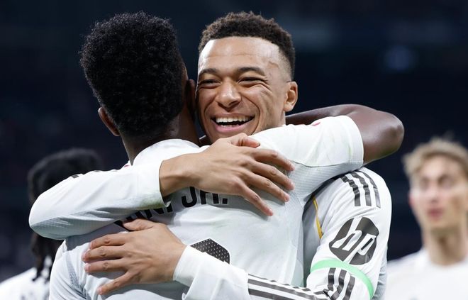 总身价高达3.5亿欧元的皇马双子星姆巴佩和维尼修斯立功,他们各进一球,成为皇马赢球的大功臣。不过,皇马还是有一大坏消息,那就是贝林厄姆受伤了,预计最少将缺席1个月。西甲争冠格局白热化,前2只差1分。皇马总积分是54分,比榜首的巴萨少1分。