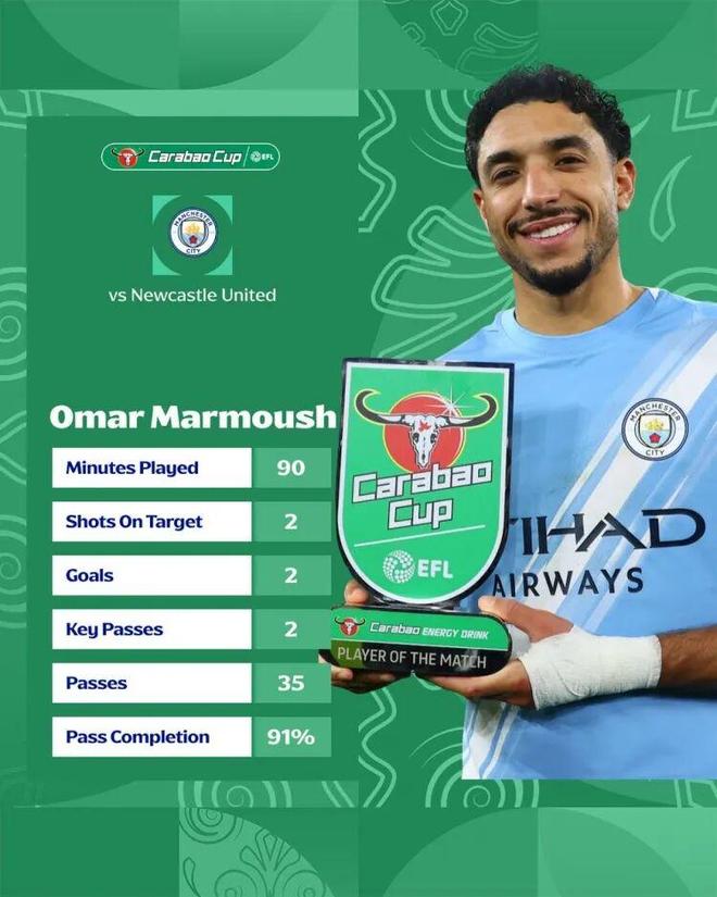 這場比賽是典型的“曼城式”杯賽勝利的,高效、冷靜、毫無波瀾。當選全場最佳的馬爾穆什(2球,評分9.4)和策劃多次進攻的賴因德斯,代表瞭曼城陣容厚度的。即便在下半場有所放松被伊蘭加扳回一城,也沒啥問題。