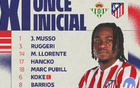 马竞客战贝蒂斯:格列兹曼、小西蒙尼首发,卢克曼首秀