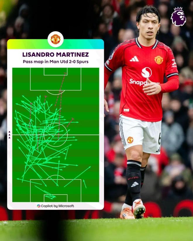 利马的作用不仅体现在防守端。他对于曼联从后场组织进攻至关重要,他能够前插到中场区域,送出精准的斜长传,并承担责任。他在对阵曼城和阿森纳时的表现尤为突出。当他上场时,曼联显得更冷静;球队感觉更能掌控比赛。数据支持这一点,直观感受也是如此。