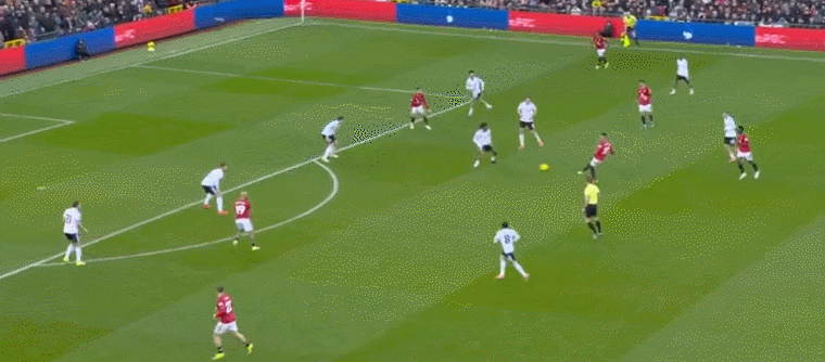 第29分鐘,佈魯諾-費爾南德斯在禁區前插搶點,伸腳射門,結果稍稍慢瞭一步,沒能夠到皮球。門將輕松把球沒收。第40分鐘,伊沃比在禁區外嘗試一腳遠射,力量不足。門將倒地把球沒收。隨後,安諾生犯規,被出示黃牌。半場結束,曼聯1-0領先富勒姆。