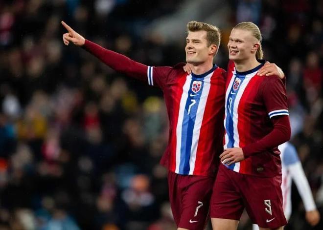 如今的挪威锋线堪称人才济济,形成了以哈兰德为首的多层次攻击体系。在2026年世预赛中,哈兰德仅用8场比赛就打入16球,当选欧洲区最佳射手,领先第二名多达8球。这位曼城前锋的国家队效率惊人,在46场比赛中攻入51球,成为史上第六位在不到50次出场就突破50球大关的球员。与哈兰德搭档的是效力于马德里竞技的锋霸瑟洛特。这位30岁的前锋状态正佳,最近连续三轮西甲破门得分,这是他在马竞生涯中首次实现连续三场联赛进球。瑟洛特在西甲早已证明自己,曾在效力比利亚雷亚尔期间单季贡献26球6助攻,成为西甲银靴。