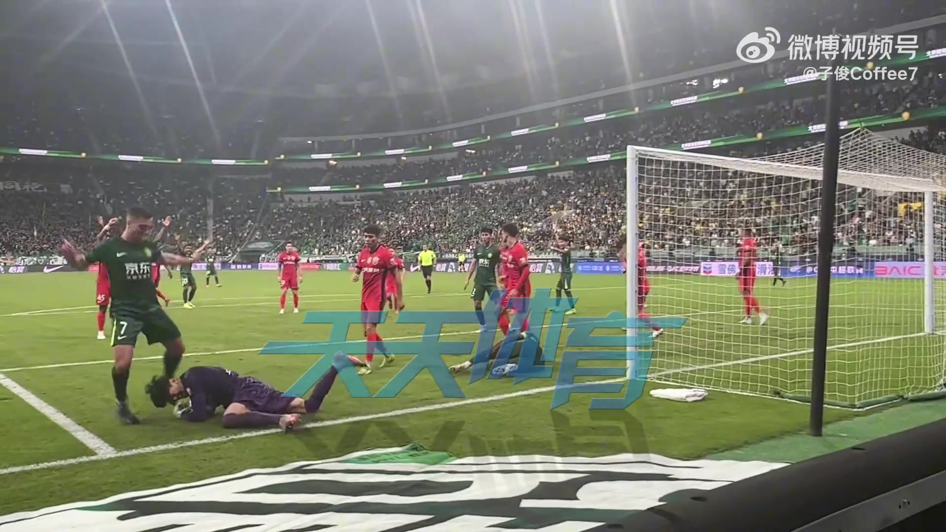 实拍海港球员在国安禁区前连续倒脚后破门工体现场哀声一片
