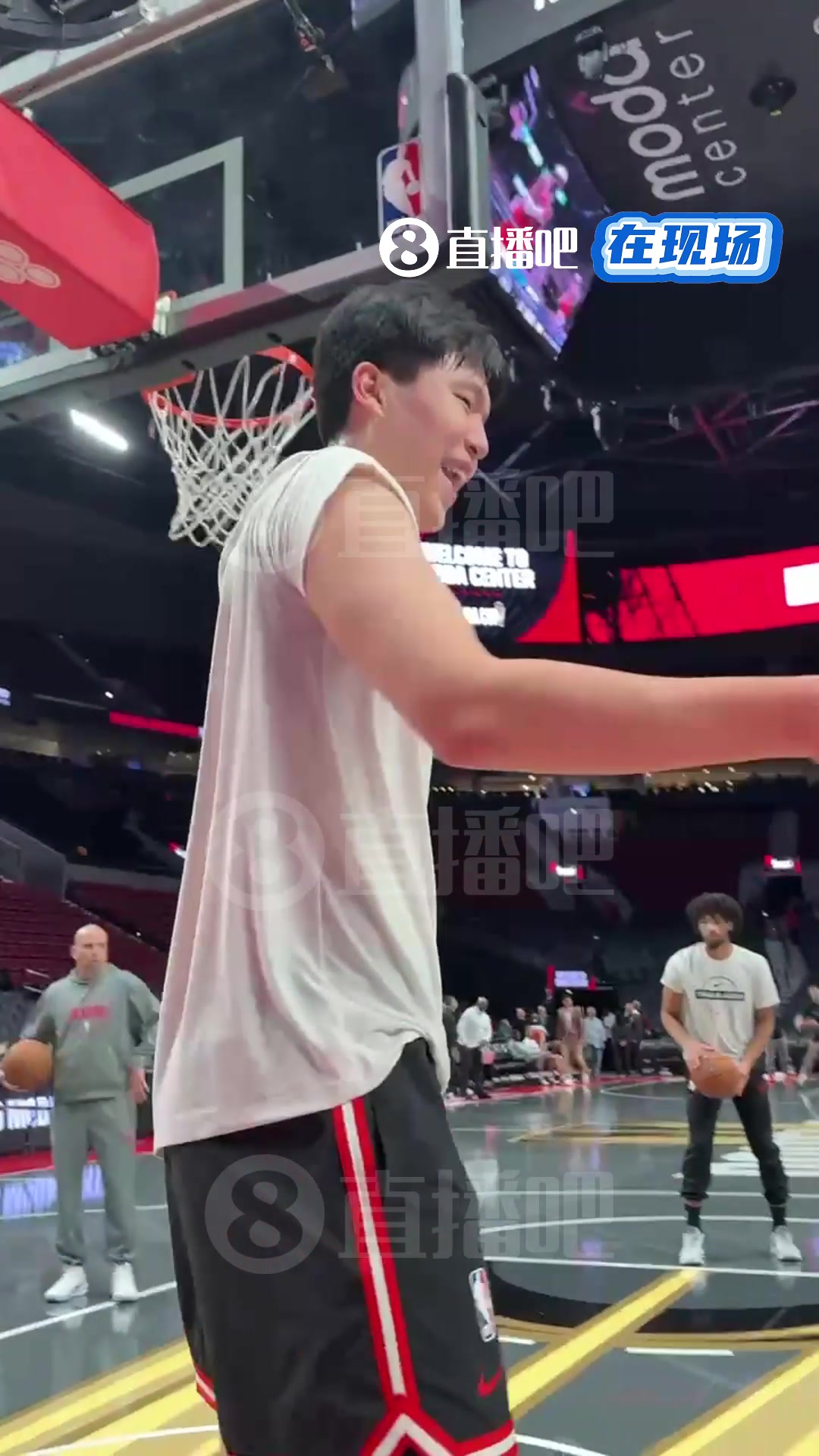 小吧现场直击杨瀚森赛前热身练顺下暴扣今天有机会登场不