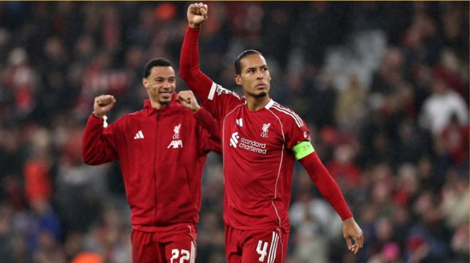 助攻帽子戏法,范戴克当选与卡拉巴赫一役利物浦队内最佳球员