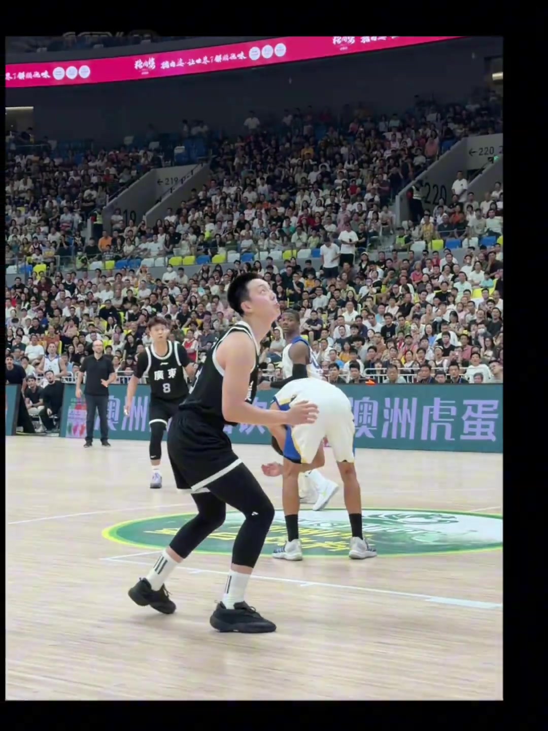 忍不住笑了胡明轩想要分球外线结果直接砸对手脑袋上