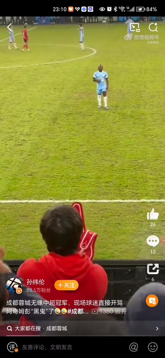 太过分了蓉城球迷对着阿奇姆彭大喊黑鬼学猴子叫