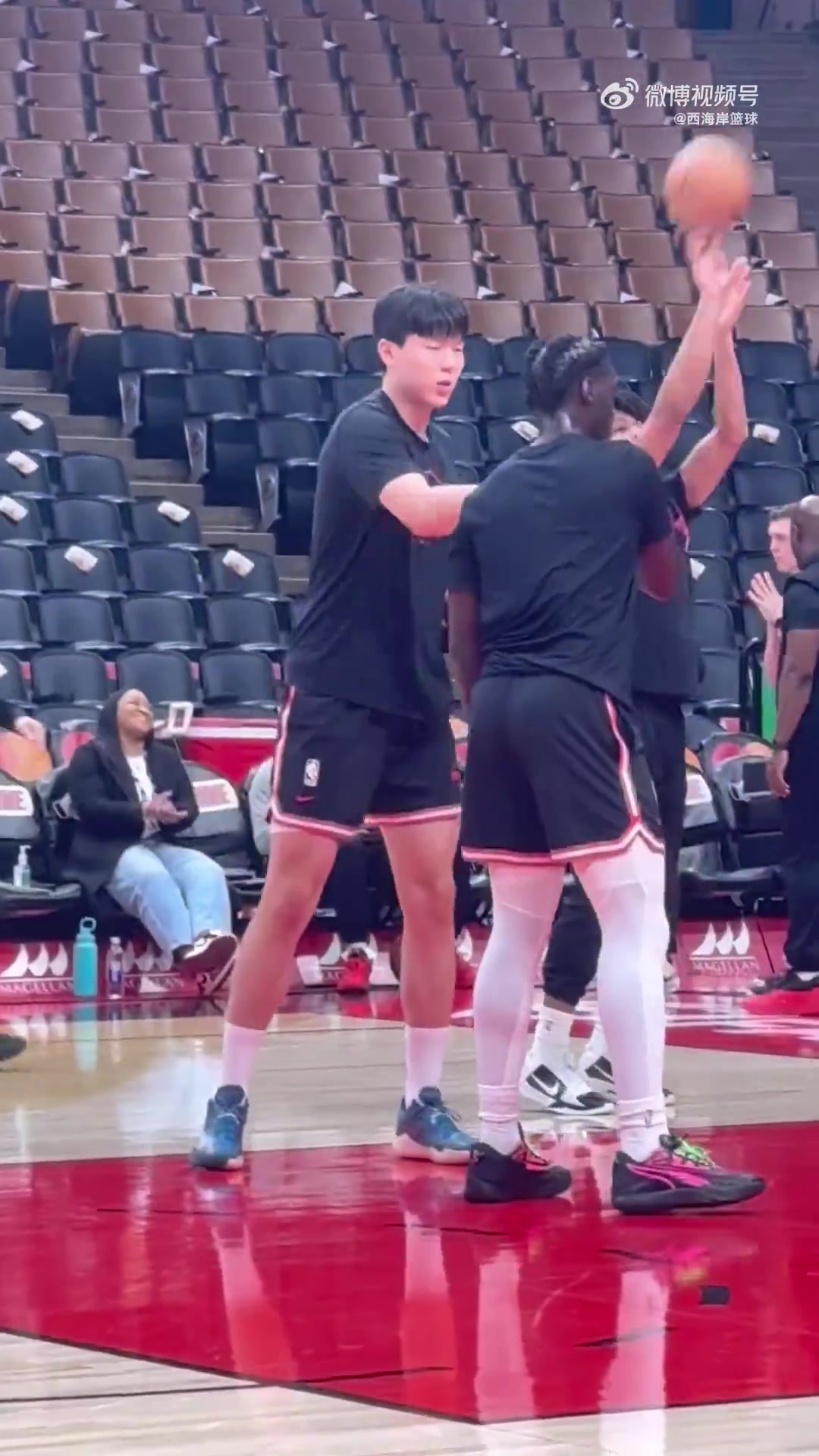 杨瀚森赛前内线训练单手抛投与好哥们西索科友谊互动
