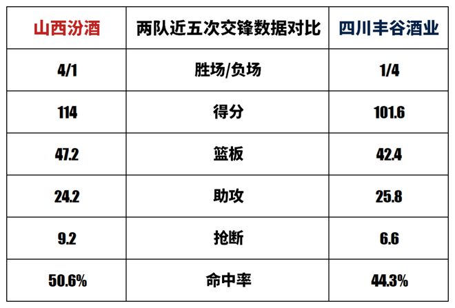 山西汾酒與四川豐谷酒業歷史上一共交手32次,山西汾酒19勝13負。本賽季兩隊交手1次,山西汾酒1勝0負。