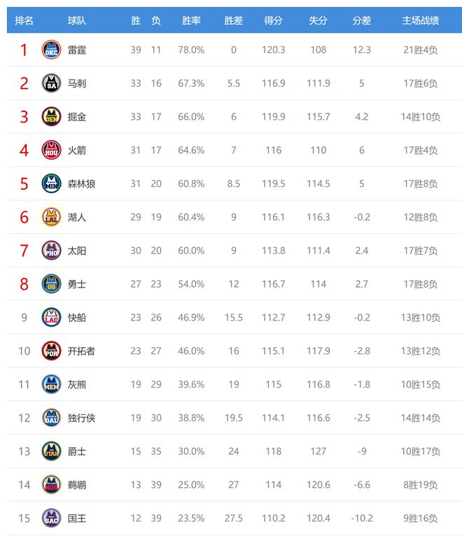 今日比賽後獨行俠、灰熊排名互換,其他西部球隊排名不變。