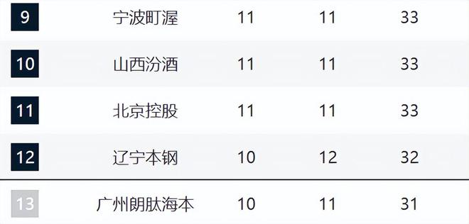 青島、北京和浙江排在6-8,他們的差距不是很大。特別是青島擊敗北京之後止住頹勢,別忘瞭之前他們五連敗。北京現在已經兩連敗瞭,排名相比於上輪再下降一名。現在他們的磨合出現大問題,許利民的用人也是一大弊端。浙江輸給廣廈,還是實力上的差距。