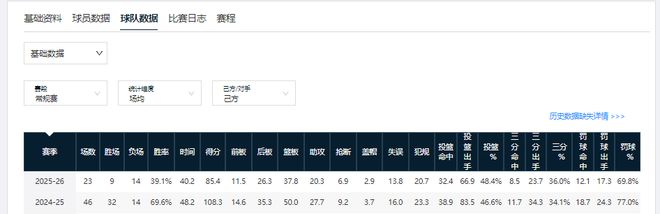新疆男籃第一階段令人失望的原因,整體上看與遼籃有相似之處。首先是成績,第一階段過後,新疆男籃以39.1%的勝率,排在積分榜第15位。
