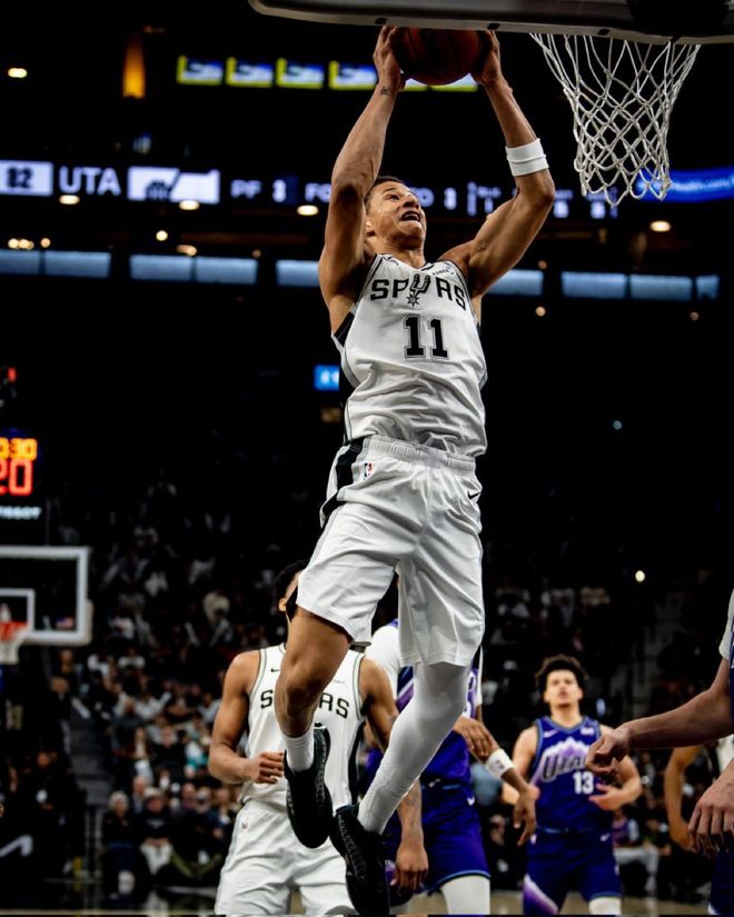海斯身高2米13,扣籃時自帶“高個球員特效”,效果好壞姑且不論。不久前他還在湖人隊的一場常規賽中完成過一記胯下扣籃,顯然擁有一套專業級別的扣籃動作庫。海耶斯來自得克薩斯大學,在2019年NBA選秀中於首輪第8順位被亞特蘭大老鷹隊選中。本賽季,海耶斯多數時間以替補身份為湖人出戰,場均能貢獻6.4分、3.9個籃板,投籃命中率更是高達驚人的77.3%。