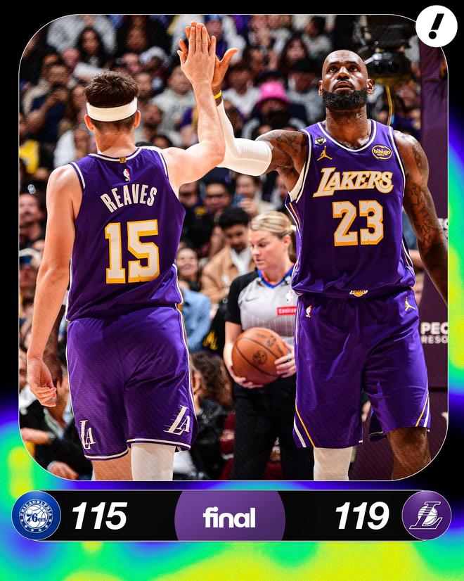 眾所周知,湖人擁有詹姆斯,東契奇和裡夫斯三位傳球大師,能給隊友們創造出極佳的空位投籃機會,但湖人偏偏就是缺射手,賽季至今場均34.9%的三分命中率排在聯盟第19位,場均隻能投進11.8個三分球,聯盟第23,打76人的這場比賽,湖人全隊三分25中9、命中率僅36%,其中裡夫斯8中5,八村壘2中2,其餘人三分合計15中2、命中率僅13.3%,真的辣眼睛。