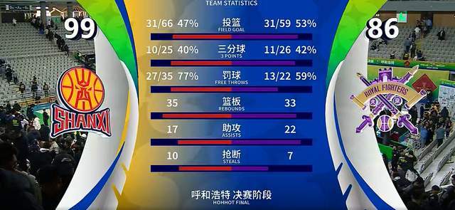 最終,山西男籃以99-86逆轉擊敗北控隊,順利淘汰對手,打進4強。