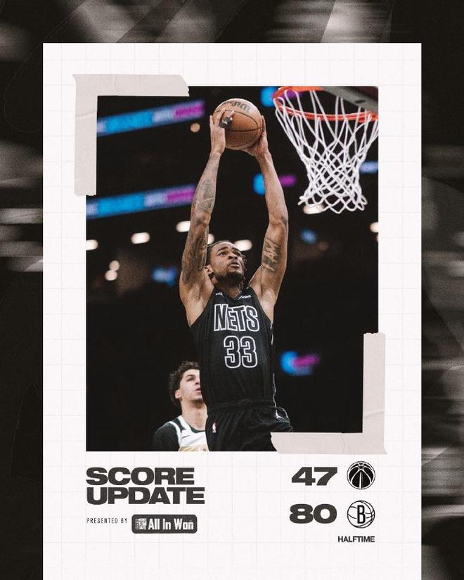 次節比賽,籃網連續兩節單節得分30+,且限制奇才連續兩節得分不足30分,籃網繼續壓制奇才擴大30+領先優勢。尚帕尼三分命中打破奇才長達9分鐘0運動戰進球局面,籃網單節34-27凈勝7分,上半場結束籃網擴大80-47領先奇才33分巨大優勢。