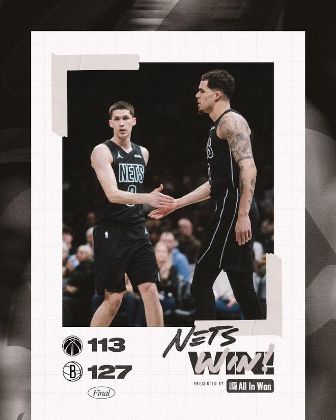 籃網全場最多時刻取得34分巨大領先優勢,下半場籃網領先優勢巨大出現松懈,他們後兩節比賽均是單節不足30分,而奇才連續兩節單節得分30+反撲追分。籃網第三節21-35輸掉14分,第四節26-31再輸5分,但最終籃網還是127-113戰勝奇才。