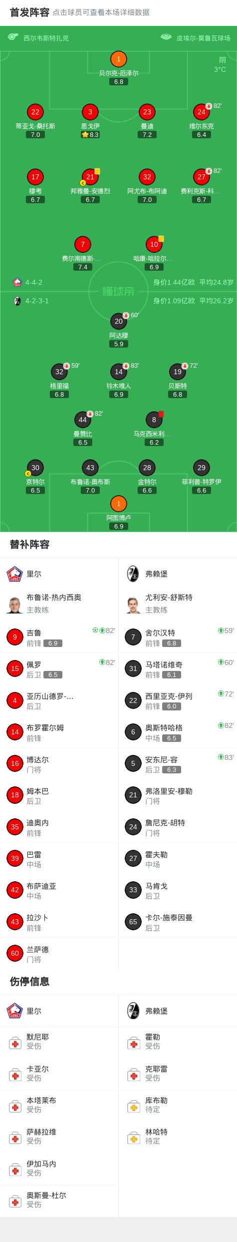 北京时间1月30日欧足联欧洲联赛 联赛阶段 第8轮,里尔对阵弗赖堡。里尔吉鲁破门。最终比分里尔 1-0 弗赖堡。里尔进入附加赛,弗赖堡晋级淘汰赛。