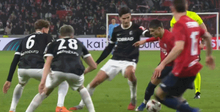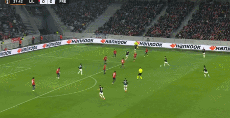 第90+2分钟,帕尔多造点,吉鲁主罚点球命中,里尔1-0弗赖堡