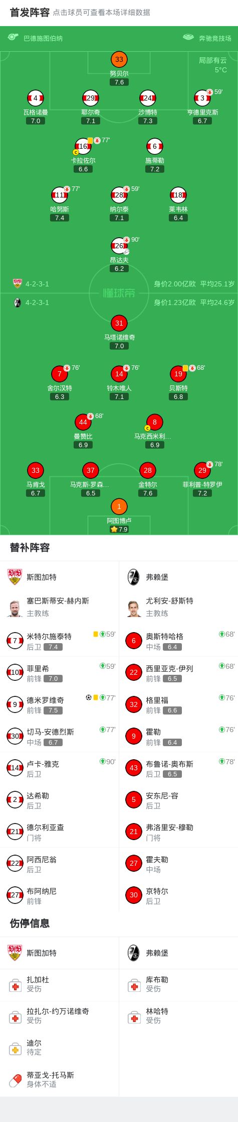 北京时间2月1日德国足球顶级联赛 联赛 第20轮,斯图加特主场对阵弗赖堡。斯图加特德米罗维奇破门。最终比分斯图加特 1-0 弗赖堡。