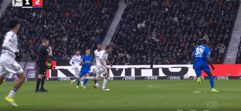 第50分钟,扳回一城,科赫二连击完成破门,法兰克福1-2