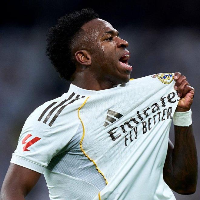 第15分钟,卜拉欣左路分球,维尼修斯禁区内连续变向,一对三完成摆脱,随即兜射轰出世界波,皇马1-0领先,熊皇终于打破13场西甲进球荒。