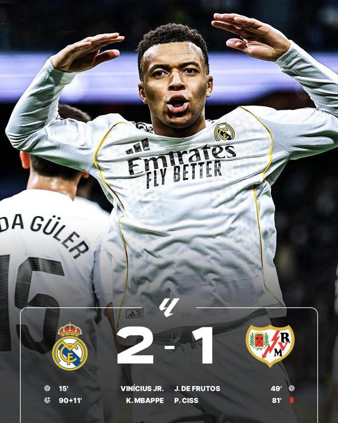 第100分钟,姆巴佩顶住压力稳稳将皮球罚进,皇马2-1,完成读秒绝杀。这是姆巴佩联赛第22球,追平凯恩,并列五大联赛射手榜第一。最近5场比赛,他场场进球,轰下8球;各项赛事37球4助攻,直接参与41球,依旧是皇马的超级大腿。