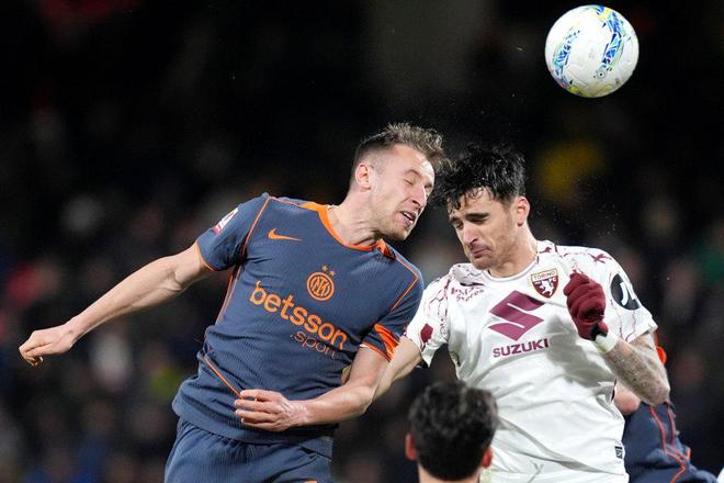 第57分鐘,國米防線出現一次溝通失誤。德弗賴上搶被擺脫,都靈迅速轉移到右路傳中,臨時回撤到中衛位置的弗拉泰西被庫倫諾維奇搶點頭球破門,比分變為2-1。