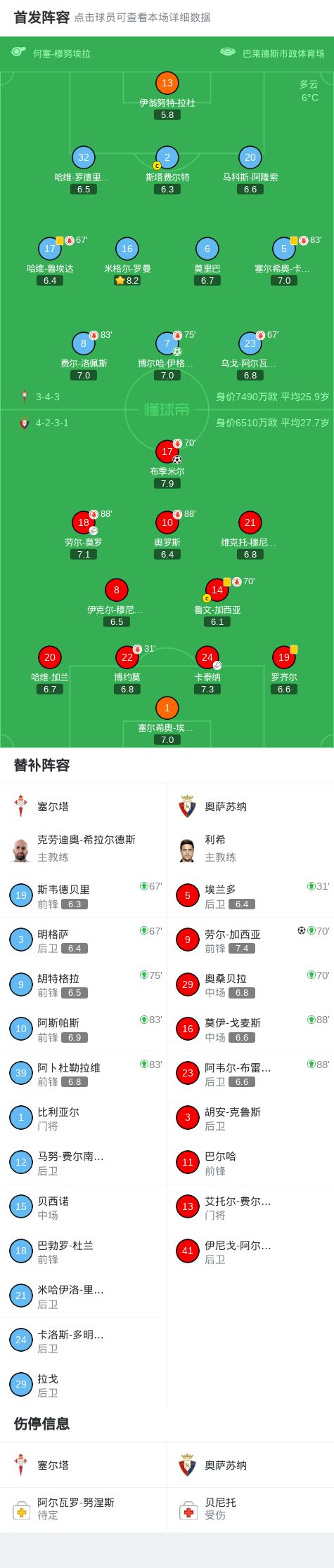 北京时间2月7日西班牙足球甲级联赛 联赛 第23轮,塞尔塔主场对阵奥萨苏纳。塞尔塔博尔哈-伊格莱西亚斯破门。奥萨苏纳布季米尔破门,劳尔-加西亚破门。最终比分塞尔塔 1-2 奥萨苏纳。