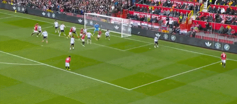 比賽剛剛開始不久,曼聯就創造出機會。阿馬德在右側內切兜射遠角,被撲瞭出去。第13分鐘,曼聯差一點丟球,幸好門將反應極快,在門線伸手擋出瞭必進球。5分鐘後,庫尼亞被放倒,裁判判罰點球,但隨後改判為任意球。佈魯諾-費爾南德斯主罰,他把球罰進禁區,卡塞米羅搶點頭球攻門,球進瞭!曼聯取得領先。