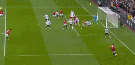 第18分鐘,曼聯右路禁區線定位球機會,B費開到禁區後點卡塞米羅頭球破門,曼聯1-0富勒姆。